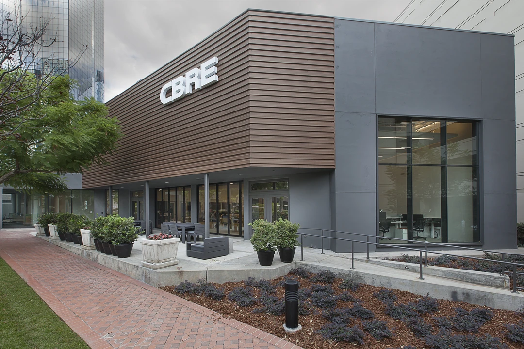 CBRE Woodland Hills features Pure + FreeForm’s Roma Noce woodgrain finish on its exterior walls, adding warmth and natural texture to the modern design. The corrugated panels create depth and dimension, enhancing the façade with a dynamic interplay of light and shadow. Designed for durability and elegance, Roma Noce brings the richness of wood with the performance of metal, offering a timeless and sophisticated look that complements the surrounding environment.